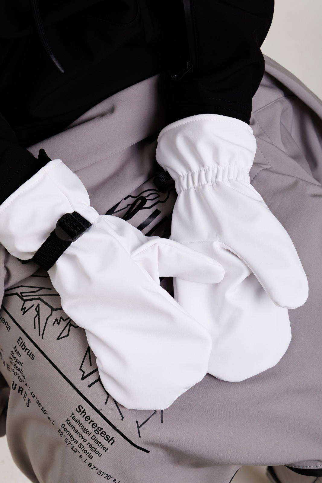 • Резинка и стропа на запястье: препятствуют попаданию снега внутрь варежек, обеспечивая дополнительную защиту.