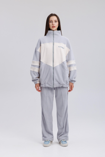 Серо-белая палитра придаёт костюму элегантный внешний вид и делает его универсальным решением для гардероба как мужчин, так и женщин. Фасон не сковывает движений и комфортно садится на разные типы фигуры.