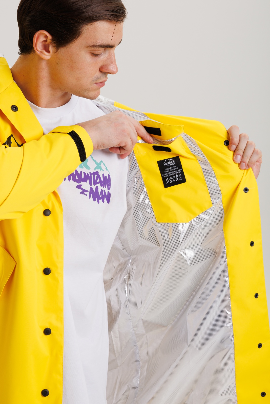 • Анатомический крой: свободный силуэт не сковывает движения, капюшон и манжеты регулируются, адаптируясь под особенности фигуры и погодные условия.